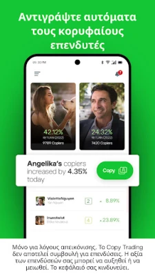 Επενδύστε έξυπνα με την πρωτοποριακή πλατφόρμα πολλαπλών περιουσιακών στοιχείων. Συμμετέχετε σε μια παγκόσμια κοινότητα εκατομμυρίων επενδυτών, μοιραστείτε ιδέες ή αντιγράψτε κορυφαίες στρατηγικές με το CopyTrader™. Δημιουργήστε το δικό σας χαρτοφυλάκιο, απολαμβάνοντας μια απρόσκοπτη και αξιόπιστη επενδυτική εμπειρία.